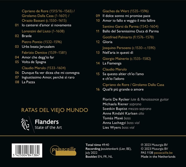 01. "Io canterei d'amor s novamente" 02. "Branle" 03. "Urbs beata Jerusalem" 04. "Amor che degg'io far" 05. "Volta de Spagna" 06. "Dunque fia ver dicea che mi convegna" 07. "Ingiustissimo Amor, perch? s raro" 08. "La Pazza" 09. "Il dolce sonno mi promise pace" 10. "Amor io fallo e veggio il mio fallire" 11. "Ballo del Serenissimo Duca di Parma" 12. "Gloria" 13. "Nell'aria in questi d" 14. "La Fiamenga" 15. "Sa questo altier ch'io l'amo e ch'io l'adoro" 16. "Qual'? pi? grande o amore"