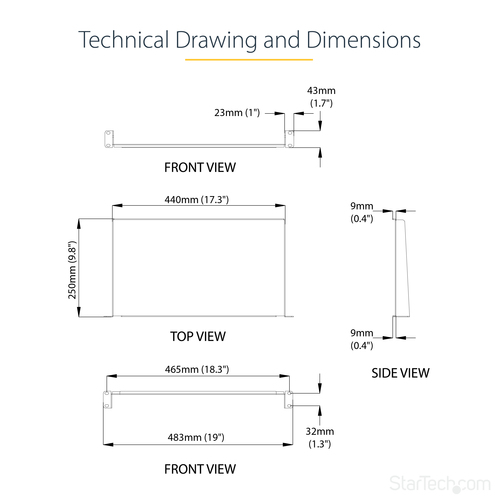 | ARTICLES | StarTech.com Étagère 1U pour rack serveur - Profondeur de 250 mm | | | | |